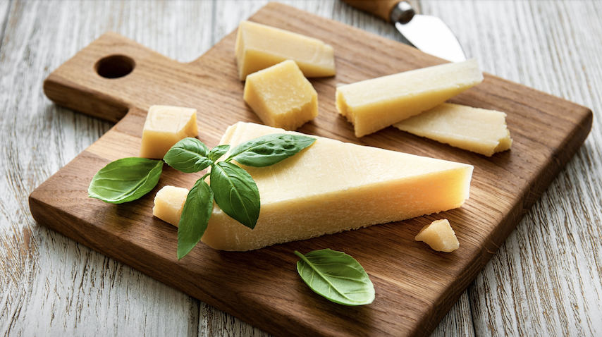 На изображении представлена деревянная разделочная доска, украшенная куском сыра, который имеет светло-желтый цвет и плотную текстуру. Сыр нарезан на несколько кусков разных форм и размеров, что создает привлекательную композицию. Рядом с сыром находятся свежие зелёные листья базилика, которые придают изображению свежесть и контрастируют с тёплыми тонами сыра. В фоновом плане виден нож с деревянной ручкой и металлическим лезвием, который аккуратно лежит на доске, свидетельствуя о недавней подготовке. Деревянная текстура поверхности стола добавляет сцене уюта и подчеркивает натуральные цвета ингредиентов. Бренд "postila.ru" упоминается на картинке, дополняя общую атмосферу сцены. Изображение передаёт чувство домашней кулинарии и качества продуктов.