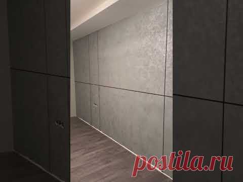 На фотографии изображён современный интерьер с минималистичным дизайном. Стены оформлены в серых тонах, что придаёт помещению строгий и сдержанный вид. Пол сделан из материала, имитирующего дерево, и имеет более тёплый оттенок, что создаёт приятный контраст с холодными стенами. Потолок светлый, с мягким освещением, которое равномерно распределяется по комнате. Светильники скрыты, что подчёркивает современный стиль. В комнате нет мебели, что усиливает ощущение простора и простоты. Изображение имеет тёмные дверные проёмы слева, ведущие в другие помещения. На стенах можно заметить чёткие линии стыков панелей, которые добавляют интерьеру структурированность и порядок. В левом нижнем углу изображения виден значок с надписью "postila.ru", что может указывать на источник фото.