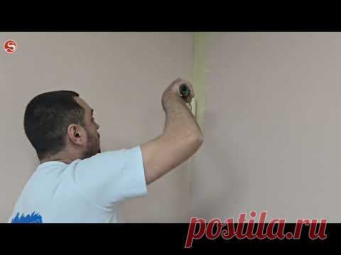 На изображении мужчина в белой футболке наносит краску на стену с помощью кисти или валика. Стена имеет светло-бежевый тон, типичный для шпалер под покраску. Мужчина сосредоточенно занимается работой, возможно обновлением старого покрытия. Атмосфера спокойная и рабочая, без лишних предметов в кадре. Вероятно, человек обустраивает жилое или офисное помещение. В левом верхнем углу виден логотип, а в правом нижнем - веб-адрес postila.ru.