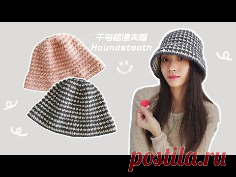 钩针渔夫帽:经典千鸟格,春秋新复古