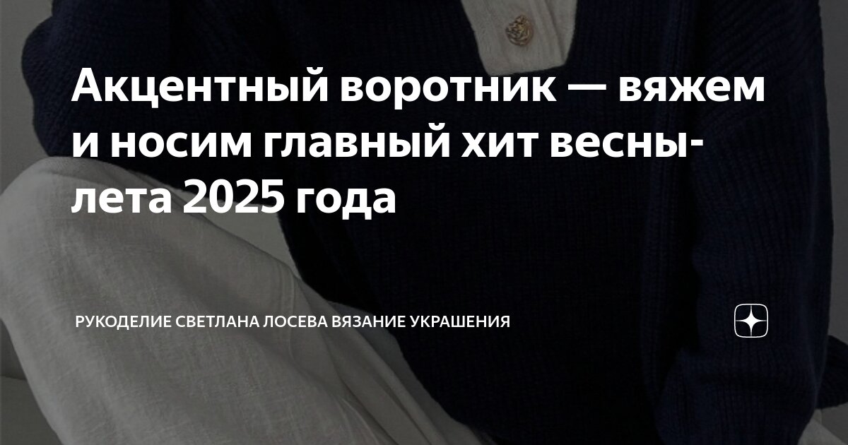 Акцентный воротник — вяжем и носим главный хит весны-лета 2025 года Статья автора «Рукоделие Светлана Лосева Вязание Украшения» в Дзене ✍: Воротники — это маленькие детали, способные преобразить образ и сделать его неповторимым.