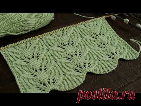 Первые листья весенний узор спицами 🍃 Free knitting pattern