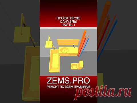 Изображение представляет собой графическую иллюстрацию, посвященную проектированию санузлов. В центре композиции расположена схема интерьера ванной комнаты, выполненная в минималистичном стиле. Некоторые элементы сантехники, такие как раковина и туалет, изображены в жёлтых тонах. На фоне изображены вертикальные цветные линии, символизирующие коммуникационные трубы. Цветовая гамма варьируется от ярко-жёлтого до синего, что придаёт рисунку контраст и динамику. В верхней части изображения написано "ПРОЕКТИРУЮ САНУЗЛЫ ЧАСТЬ 1", что подчёркивает архитектурную и проектировочную тематику. Нижняя часть содержит текст "ZEMS.PRO РЕМОНТ ПО ВСЕМ ПРАВИЛАМ", указывающий на профессиональные услуги в области ремонта и дизайна интерьеров.