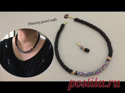 How to make seed bead rope necklace set/Black beads tubular rope necklace tutorial/Rope bracelet