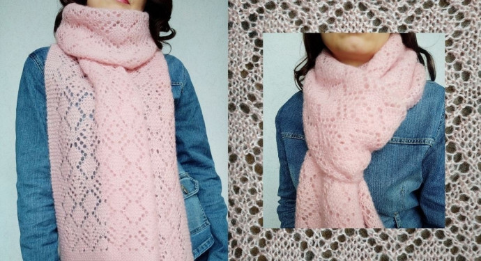 Ажурный шарф - палантин с геометрическим рисунком на платочной вязке