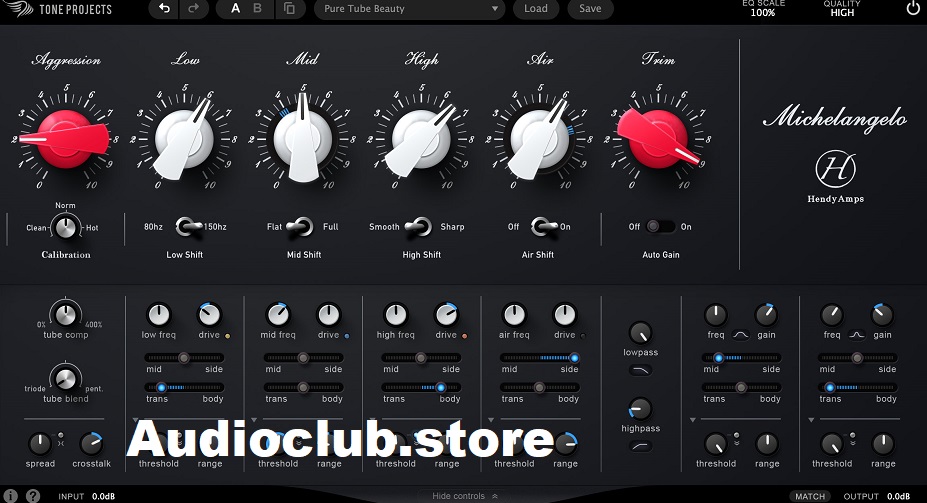 The Michelangelo plugin designed by Tone Project and Chris Henderson of Hendyamps should be acknowledged as a stunning recreation of the well-known all-tube stereo equalizer/harmonics generator made by hand