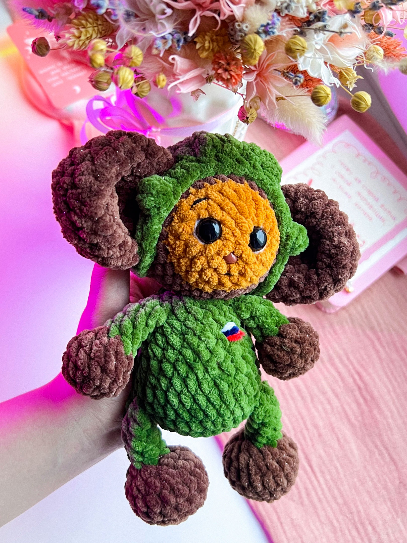 PDF Чебурашка крючком. FREE crochet pattern; Аmigurumi toy patterns. Амигуруми схемы и описания на русском. Вязаные игрушки и поделки своими руками #amimore - плюшевый Чебурашка из детского мультфильма Крокодил Гена и его друзья, персонаж из детского мультика из плюшевой пряжи, сувенир к 23 февраля.