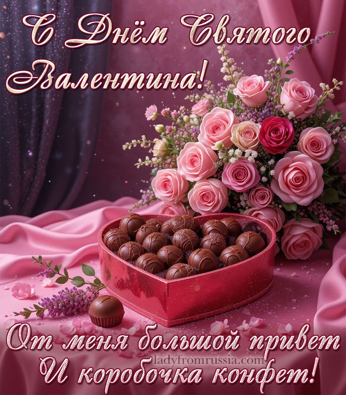 картинка с днем Валентина, с днем влюбленных, валентинка, 14 февраля, от меня большой привет и коробочка конфет!