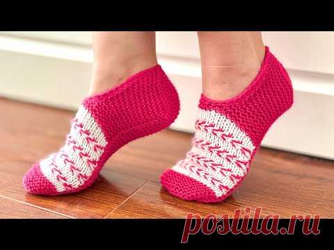 ОЧЕНЬ ПРОСТЫЕ СЛЕДКИ спицами БЕЗ ШВА! Мастер класс для начинающих KNITTING SLIPPERS
