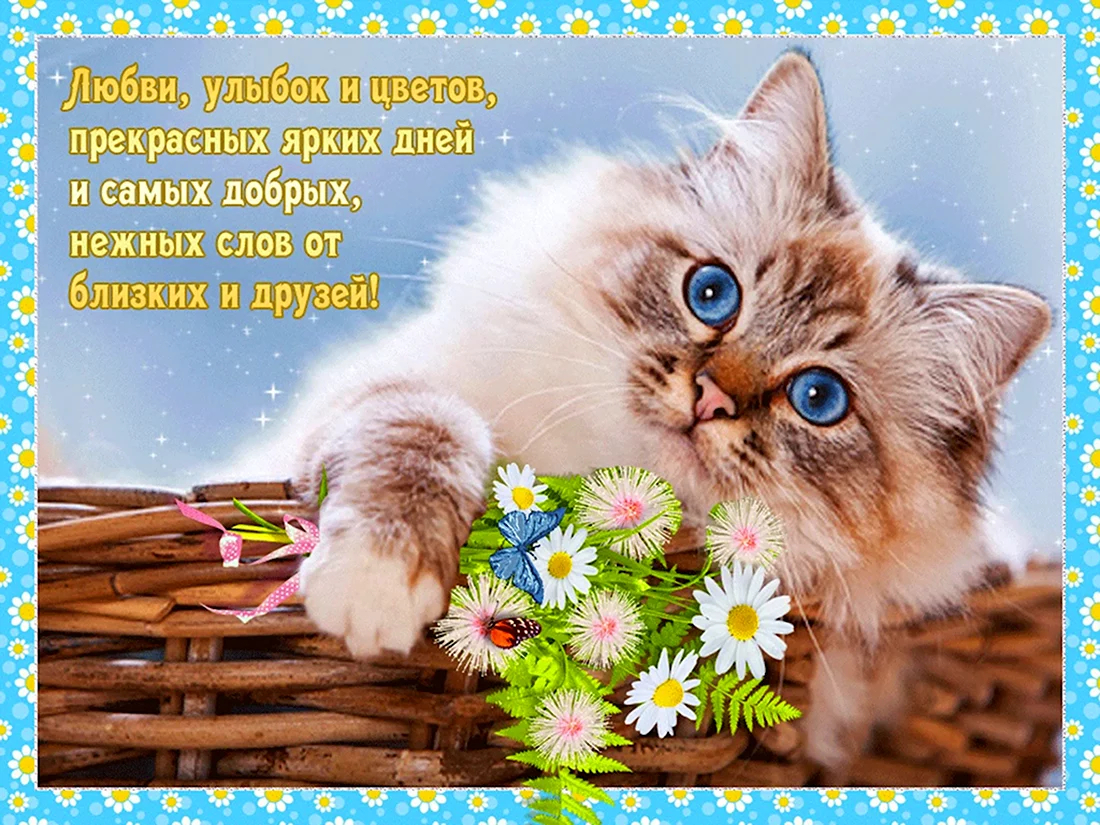 Пусть настроенье будет супер,С улыбкой день встречай всегда,Тебе сопутствует удача,И не оставит никогда!