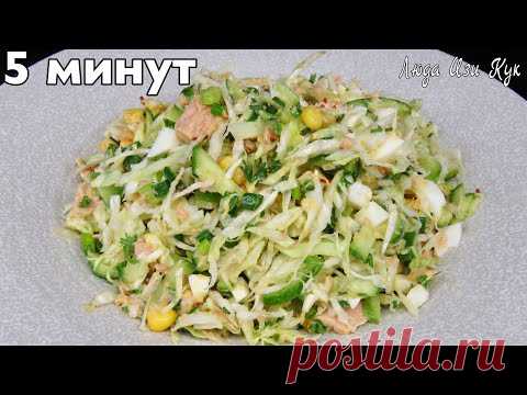 🐟🍋Легкий Салат с капустой и тунцом за 5 минут на каждый день Люда Изи Кук обед #салат #обед #ужин