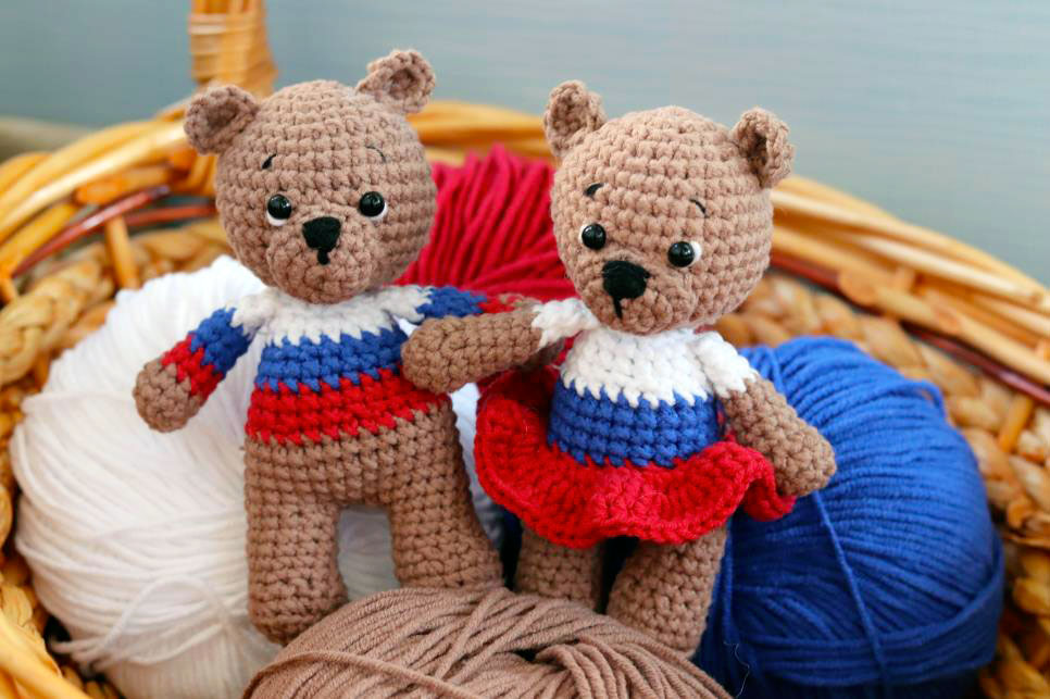 PDF Родные Мишки крючком. FREE crochet pattern; Аmigurumi toy patterns. Амигуруми схемы и описания на русском. Вязаные игрушки и поделки своими руками #amimore - медведь, маленький медвежонок, мишка из обычной пряжи.
