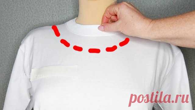Как увеличить вырез за 5 минут, чтобы не давил шею Если горловина у футболки слишком маленькая - носить её невозможно – давит, душит и даже портит посадку. Но не спешите откладывать вещь в дальний угол! В этом видео покажу, как легко расширить горловину за 5 минут, не добавляя лишнюю ткань и не портя внешний вид.