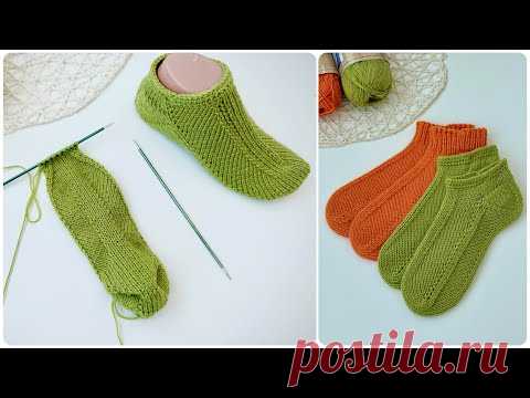 СЛЕДКИ-носки на двух спицах БЕЗ ШВА! Мастер класс для начинающих knitting socks