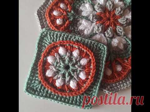 Квадратный мотив крючком для пледа Blanket Tea от vcrochetpatterns.com