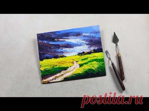 Simple Palette Knife Landscape – Path Through Bright Fields | Acrylic on Canvas