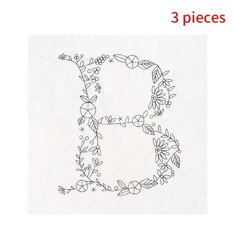 Изображение представляет собой букву «В», оформленную в виде цветочной композиции на белом фоне. Буква состоит из переплетённых линий и разнообразных цветочных элементов, таких как листья, цветы и круги, что придаёт ей изящный и естественный вид. Эти элементы выполнены в черно-белой графике, без использования цветов. В верхней части изображения присутствует текст «3 pieces» красного цвета, который заключён в правом верхнем углу. В нижнем правом углу добавлен текст с указанием сайта. Композиция имеет лёгкий и воздушный характер, благодаря чему создаёт ощущение лёгкости и творчества. Дизайн выглядит как отпечатанный на фактурной бумаге, что добавляет ему глубины. Стиль оформления можно отнести к декоративному и эклектичному, что подчёркивает внимание к деталям и акцент на природные формы.