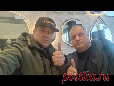 На фотографии изображены два мужчины, которые находятся в помещении с ярким освещением. Один из них одет в темную куртку и бейсболку с надписью "BRIGADA", а другой в темную толстовку с еле читаемой надписью. Они оба показывают жест "лайк" большими пальцами вверх. Фон составляют зеркала круглой формы, подвешенные на светлой кирпичной стене, которые создают атмосферу современного интерьерного дизайна. Оба мужчины смотрят в камеру с уверенным и спокойным выражением лиц, что говорит о позитивном настроении. Освещение достаточно яркое, что придаёт изображению чёткость и контрастность, подчеркивая выражения лиц и детали одежды. Сцена явно происходила в дневное время, возможно, в одном из современных магазинов или шоурумов, где представлены различные элементы декора. Мастерство применения светлых оттенков в интерьере, в сочетании с современными аксессуарами, создаёт интересный визуальный эффект.