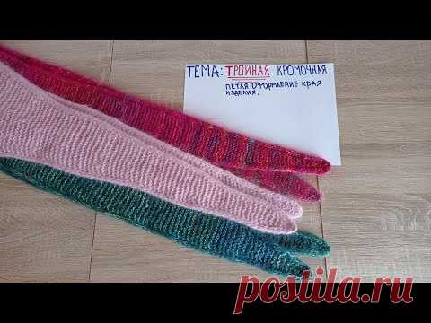 На изображении представлено три длинных вязаных полосы, аккуратно уложенных на светлом деревянном фоне. Полосы кажутся выполненными из мягкой пряжи и имеют три разных цвета: глубокий розовый, светло-розовый и насыщенный зелёный. Текстура вязки говорит о высокой плотности и аккуратности выполнения работы. На верхнем крае фото прикреплён лист бумаги, на котором написано «Тема: Тройная кромочная», где слово «Тройная» выделено красным цветом, а остальная часть надписи выполнена синим. Бумага озаглавлена в форме объяснительной записки, создавая ощущение, что данное изображение относится к учебным материалам или мастер-классу по вязанию. В кадре также заметно слово «лддо», что может означать как авторский или тематический элемент изображения. Свет на изображение падает равномерно, способствуя ясному восприятию всех компонентов кадра, подчёркивая элементы вязки. Такое сочетание элементов, включая текст с бумажным листом, считается полезным для рукодельного контекста.