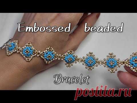 DIY Embossed Seed beaded Bracelet Tutorial 🌺