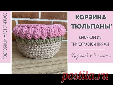 КОРЗИНКА "ТЮЛЬПАНЫ" крючком из трикотажной пряжи || Подарок к 8 марта || Подробный мастер-класс
