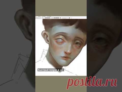 На изображении представлен портрет, созданный в цифровом стиле, где используется техника быстрой покраски в программе SAI. Центральное место занимает лицо, скульптурно освещенное и изображённое в мягких пастельных тонах — бледно-розовом и серо-голубом. Лицо исходит спокойствием и рефлексией, оно имеет крупные, задумчиво опущенные глаза. Контуры лица плавные, волосы короткие и тёмные. Композиция направляет внимание зрителя исключительно на лицо, оставляя фон и детали в минимализме. Лицо подано в анфас, освещение мягкое, что создаёт атмосферу интроспекции. Тень и свет на коже придают изображению скульптурную глубину, отсутствуют резкие контрасты и текстуры. Очевидно, что художник использует современную цифровую технику для создания столь детализированного и впечатляющего портрета. Текст "Быстрый покрас в sai #art" интегрируется в изображение, подчёркивая методику и скорость работы над картиной.