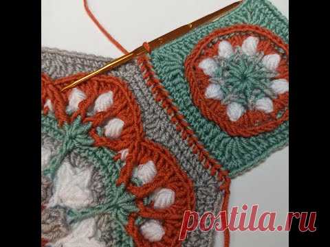 Соединение восьмиугольного мотива и квадрата крючком для пледа Blanket Tea