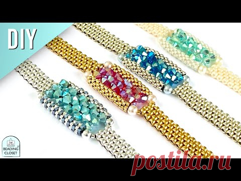 How to make a custom beaded bracelet with 4 mm bicone crystals and seed beads using peyote stitch.