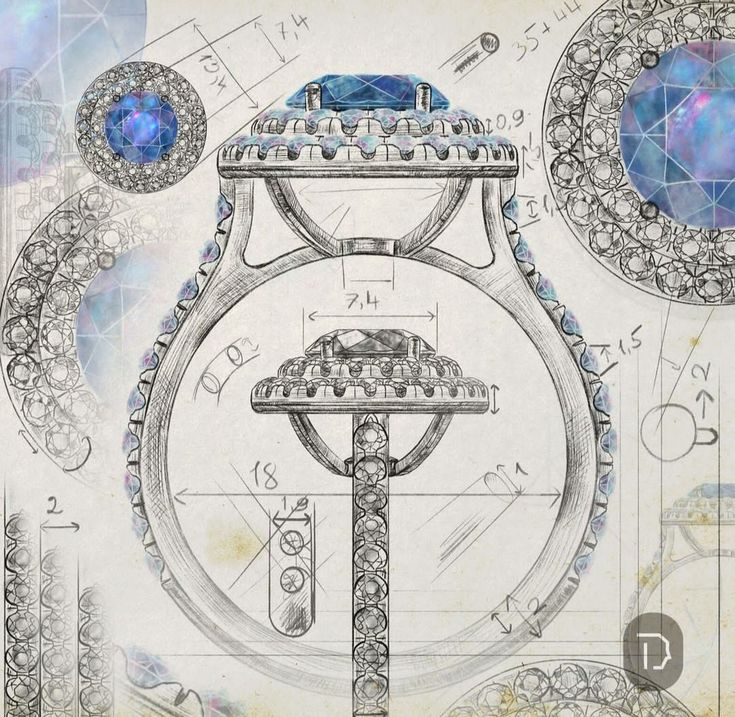 Кольцо. Эскиз. Обручальное кольцо. Синий камень.
