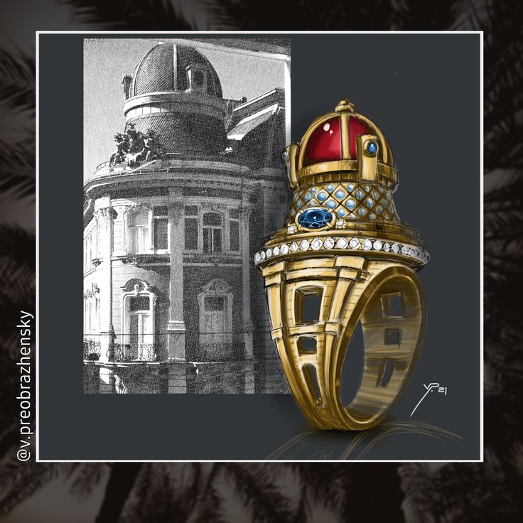 Кольцо. Эскиз. Обсерватория. Эмаль. Желтое золото.