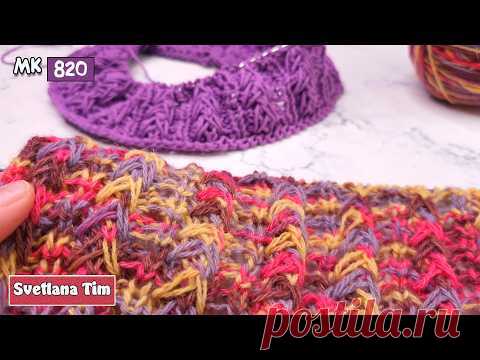 Узор спицами: по кругу и поворотными рядами! Идеален для меланжевой пряжи! 🎨✨