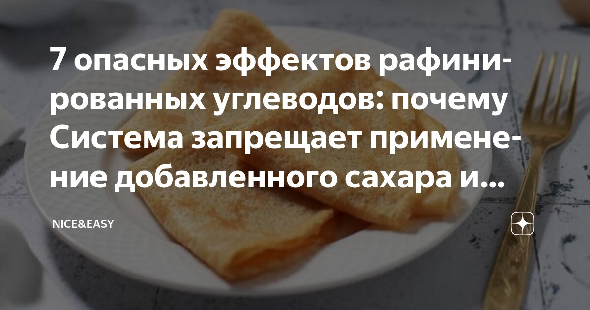 7 опасных эффектов рафинированных углеводов: почему Система запрещает применение добавленного сахара и белой муки Статья автора «Nice&Easy» в Дзене ✍: Всем привет! Я вчера забыла поздравить вас с Масленицей – позвольте исправиться. Но блины печем исключительно правильные!
