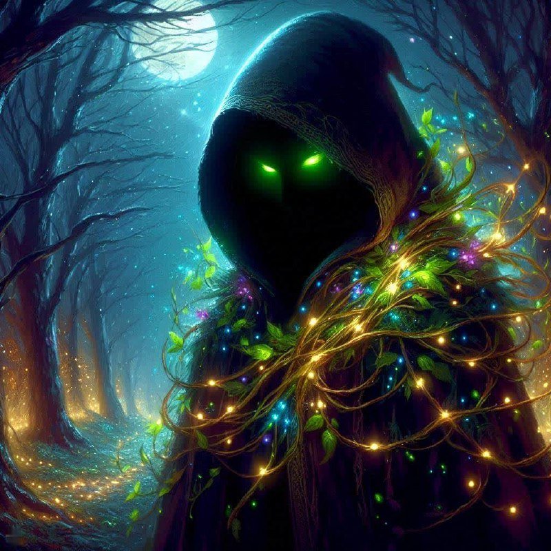 Тайный фигура в темном плаще: волшебство леса. Картинка из нейронной сети Dalle - Dalle примеры промтов - Форум ИИ о нейросетях - Yes Ai