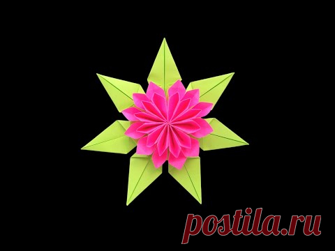 На изображении представлено яркое и красочное оригами, сложенное в форме цветка, которое идеально подходит как подарок маме на 8 марта. Цветок состоит из центральной части ярко-розового цвета, окруженной зелеными лепестками, которые напоминают звезду. Материал, из которого сделан цветок, — это бумага, характерная для оригами, со свойственной ей текстурой и гладкостью. Контрастное сочетание розового и зеленого цветов делает композицию выразительной, а черный фон подчеркивает яркость изделия, создавая эффект глубины. Композиция симметрично расположена в центре изображения, придавая ей элегантность и баланс. Светлое освещение акцентирует внимание на деталях, а простота и изящество работы вызывают ощущение навыка и креативности. Оригами ассоциируется с японской культурой и искусством, и данная работа передает атмосферу праздника и заботы.