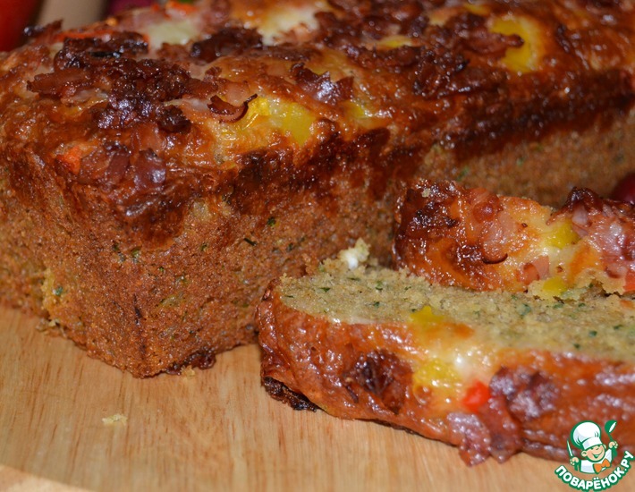 - Продукты для миски №1 Лук мелко нарежем и смешаем все продукты в одной миске№1 Продукты для миски №2 Хорошенько все перемешаем. Миска №2 Продукты миски №1 и миски №2 соединить, перемешать и отставить в сторону Перец красный и желтый нарезать на кусочки. Сыр натереть на крупной терке и смешать с перцем. Форму хорошенько смазать подсолнечным маслом. Форма 22х10 Вылить наше тесто. Сверху выложить смесь сыра и перца. Печем в разогретой духовке 20 минут при 180 гр. Пока хлеб в духовке, на сковородке жарим бекон, нарезанный на кусочки. Быстро выложить бекон на хлеб и допекать еще 10 минут. Мексиканский хлеб готов!