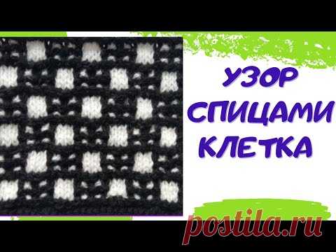 Двухцветный узор спицами Клетка | Ленивый жаккард