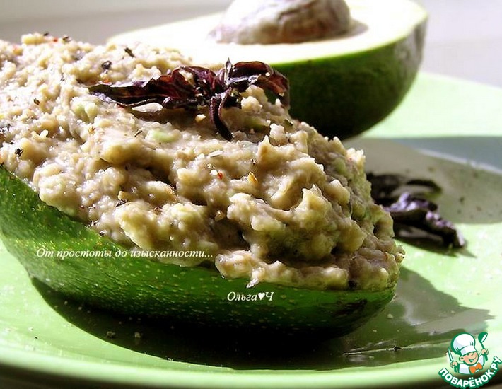- Лук нарежьте, обжарьте на растительном масле до прозрачности. Добавьте грибы, готовьте, пока не испарится лишняя жидкость, затем влейте вино и дайте выпариться спирту, посолите, поперчите. Тушите под крышкой до готовности. Грибы поместите в чашу блендера, добавьте нарезанный чеснок, рубленные листики базилика и мякоть авокадо. Измельчите с помощью погружного блендера. Добавьте еще соль или смесь перцев, если нужно. Выложите дип в лодочку из шкурки авокадо. Украсьте базиликом и подавайте. Для подачи отлично подойдет домашний темный хлеб и/или овощи, нарезанные длинными брусочками для макания. Приятного аппетита!