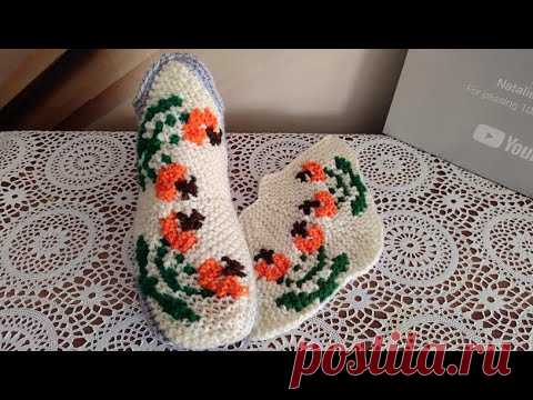 Тапочки, связанные спицами укороченными рядами "Ягодка боярышника"