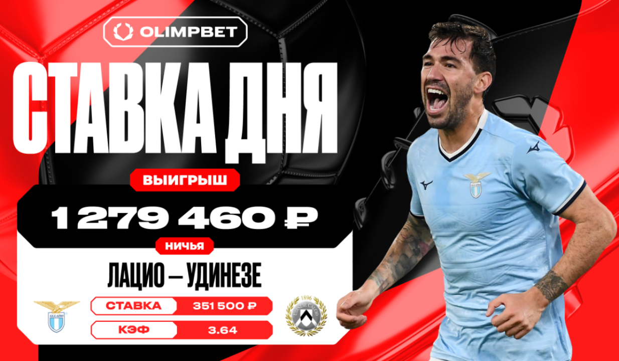 Ничья в матче «Лацио» и «Удинезе» принесла клиенту OLIMPBET почти 1,3 млн рублей. Клиент OLIMPBET поставил на ничью в матче «Лацио» и «Удинезе» с кэфом 3.64 и выиграл почти 1 279 460 рублей.