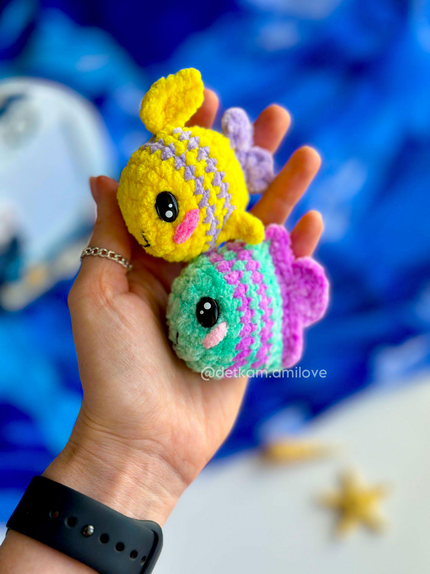 PDF Рыбки-цветняшки крючком. FREE crochet pattern; Аmigurumi toy patterns. Амигуруми схемы и описания на русском. Вязаные игрушки и поделки своими руками #amimore - плюшевая рыба, маленькая рыбка из плюшевой пряжи.