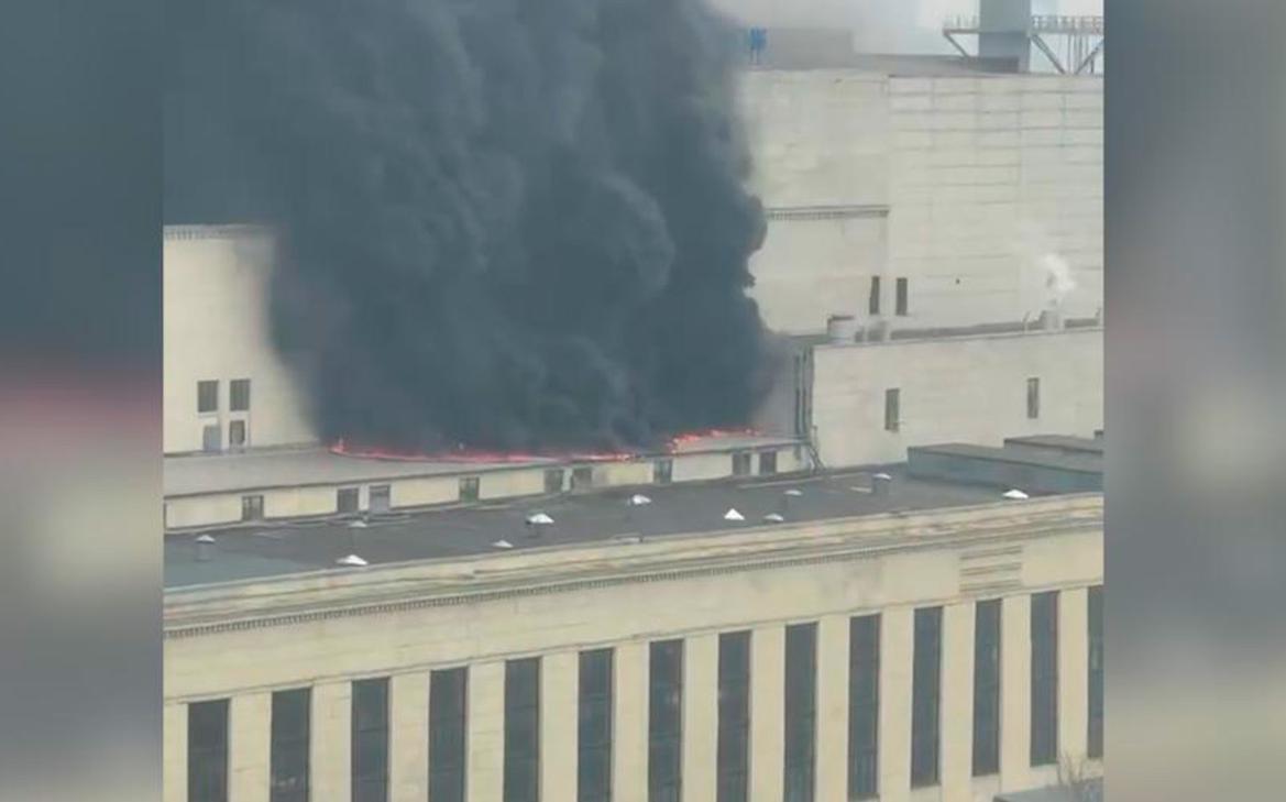 Пожар на территории ТЭЦ на северо-западе Москвы. Видео. Горит кровля находящегося на ремонте здания. В МЧС сообщили, что пожар не повлиял на работу ТЭЦ