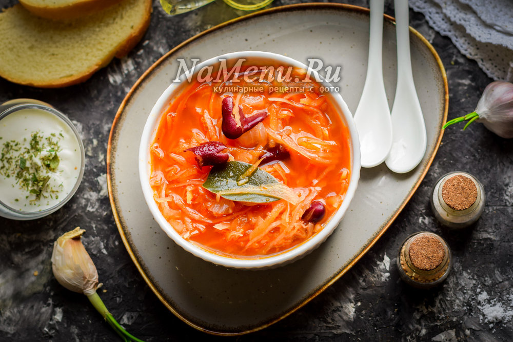 Фасолевый суп с квашеной кислой капустой – без мяса Фасолевый суп с квашеной кислой капустой получается вкусный и без мяса. Это отличный рецепт из красной фасоли, который прекрасно подойдет и для тех, кто постится, и для тех, кто любит вкусные и сытные первые блюда.
