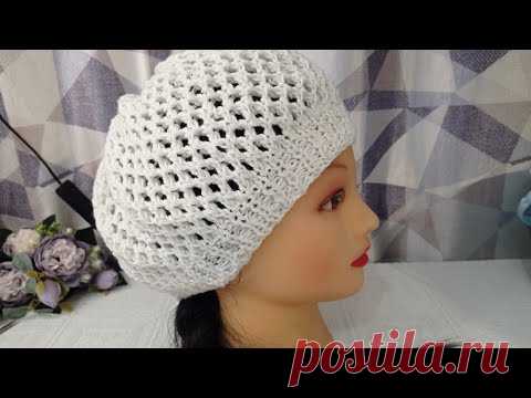 Весенне-летний берет из полу-хлопка связан сетчатым узором...