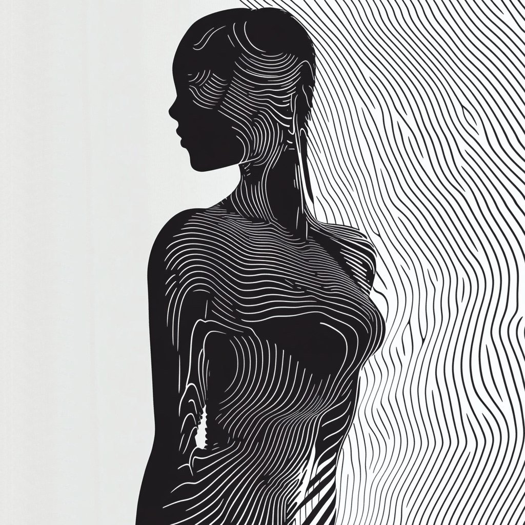 Черно-белая геометрия: психоделический портрет в стиле зентангл. Изображение из нейросети Midjourney - Midjourney примеры промтов - Форум ИИ о нейросетях - Yes Ai
