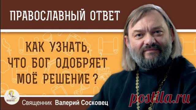 КАК УЗНАТЬ, ЧТО БОГ ОДОБРЯЕТ МОЕ РЕШЕНИЕ? Священник Валерий Сосковец