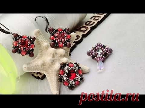 На изображении представлены изящные изделия ручной работы из бисера, расположенные на белом фоне. Эти украшения выполнены в форме разных геометрических фигур с использованием ярких оттенков красного, черного и серебристого бисера. Один из кулонов расположен на фоне морской звезды, что добавляет атмосферу морской тематики и экзотики. Четкие формы и мастерская работа с бисером создают ощущение легкости и утонченности. Видна текстура бисера, которая переливается при освещении. В левом углу заметна часть светло-желтого предмета, который может быть элементом декора или упаковки. На фоне различимы элементы декора, которые придают изображению глубину, включая зигзагообразные полосы, разбивающие плоскость кадра. Свет яркий и равномерный, создающий ровное освещение, подчеркивающее яркость и насыщенность красок. Хотя люди на фото отсутствуют, изделия кажутся невероятно персонализированными, что отражает индивидуальный стиль и вкус автора или обладателя этих украшений. Также рядом с изображением возникает текстовая ссылка на видео YouTube, связанное с темой рукоделия и, возможно, обучающими материалами по созданию таких изделий.
