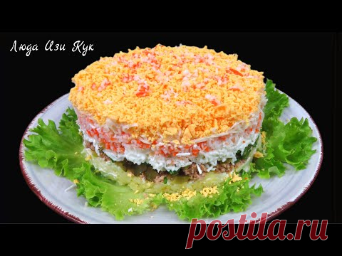 Красивый Салат Золотая шапочка с тунцом и крабовыми палочками, Всегда уходит первым Люда Изи Кук
