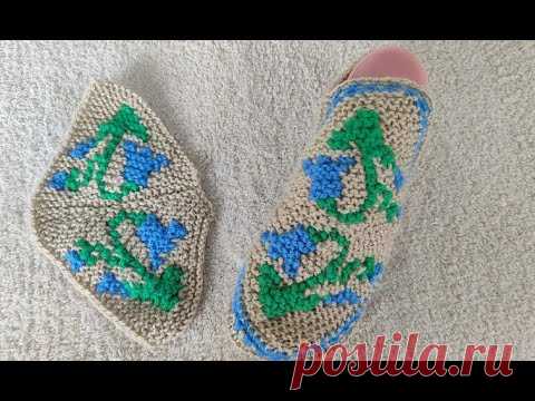 Вяжем переднюю часть для тапочек с узором "Колокольчик"