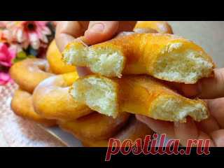 Воздушные пончики Ингредиенты: теплая вода — 200мл сахар — 4 ст. ложки дрожжи — 2 ст. ложки соль — 1 ч.л тёплое молоко — 300 мл мука — 800 г слив.масло — 1 ст. ложка Автор видео: https://clck.ru/32WtEL