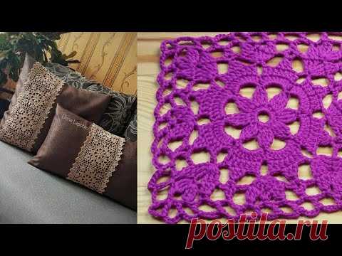 На изображении представлена уютная сцена из интерьера, где акцент сделан на декоративные элементы ручной работы. Слева видны две подушки коричневого цвета с контрастными полосками бежевого кружевного узора, который добавляет текстурный акцент. Декорации выглядят стильными и внимательными к деталям, подчёркивая заботу о комфорте и эстетике. Фон выполнен в светлых тонах с древесными элементами, создавая теплую и уютную атмосферу. Справа - крючковое изделие ярко-лилового цвета, имеющее форму квадрата с центральным цветочным мотивом и ажурными элементами. Текстура изделия подчёркивает мастерство изготовления и придаёт ощущение индивидуальности. Общая композиция иллюстрирует гармоничное сочетание текстильных элементов ручной работы в интерьере. Боковое освещение выделяет рельеф и придаёт дополнительную глубину изображению. Растительное украшение вписывается в общую тему оформления. Слова "Квадрат для Декора" естественным образом correspond to the contemporary vibe of handmade design.